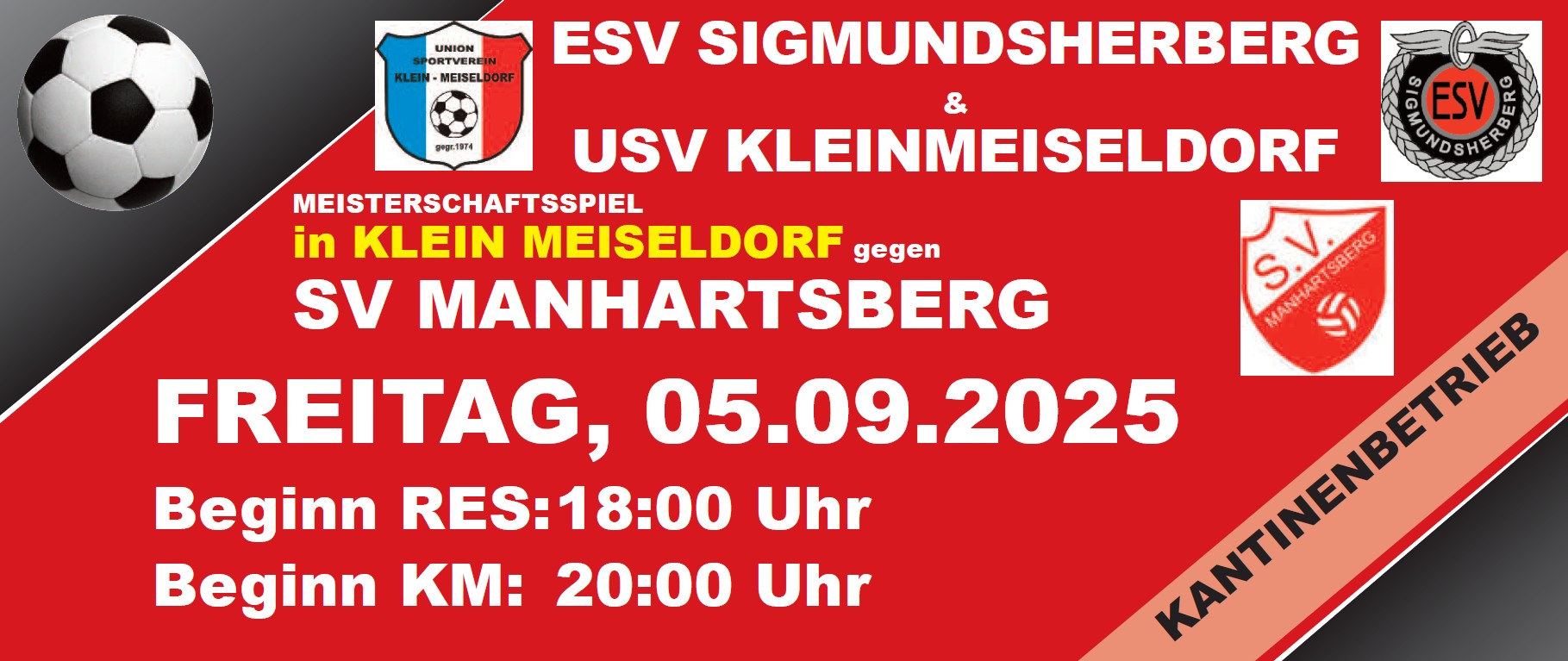 Auch im Heimspiel in Klein Meiseldorf gegen Manhartsberg konnte die Negativserie der laufenden Saison nicht durchbrochen werden. Bis zum Seitenwechsel konnte die Niederlage noch in Grenzen gehalten werden (Pausenstand 0:1), nach dem Wechsel nutzte aber auch ein Treffer von Kamil Bohdalek nichts und man ging mit 1:5 unter.