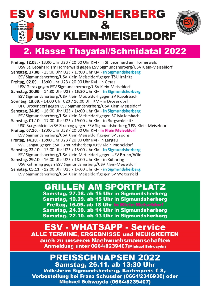 Nächste Runde ist die SG ESV/USV spielfrei. Weiter geht es mit einem Heimspiel am 27.08.2022, 15:00/17:00 Uhr gegen Irnfritz.