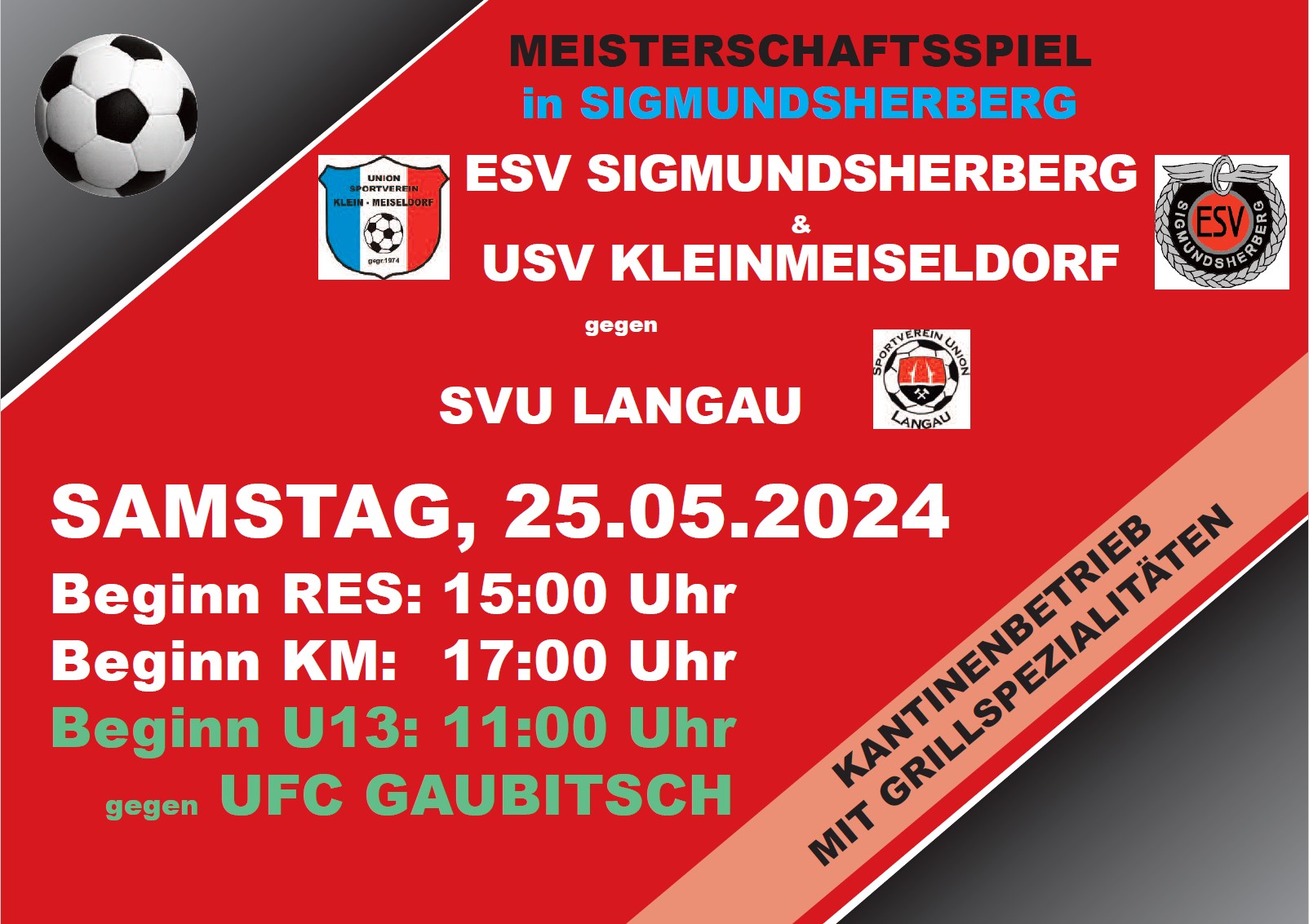 Am Samstag, 25.05.2024 wartet wieder ein großer Heimspieltag. Die U13 startet schon um 11:00 Uhr gegen Gaubitsch, um 15:00/17:00 Uhr folgen Reserve und Kampfmannschaft gegen Langau.