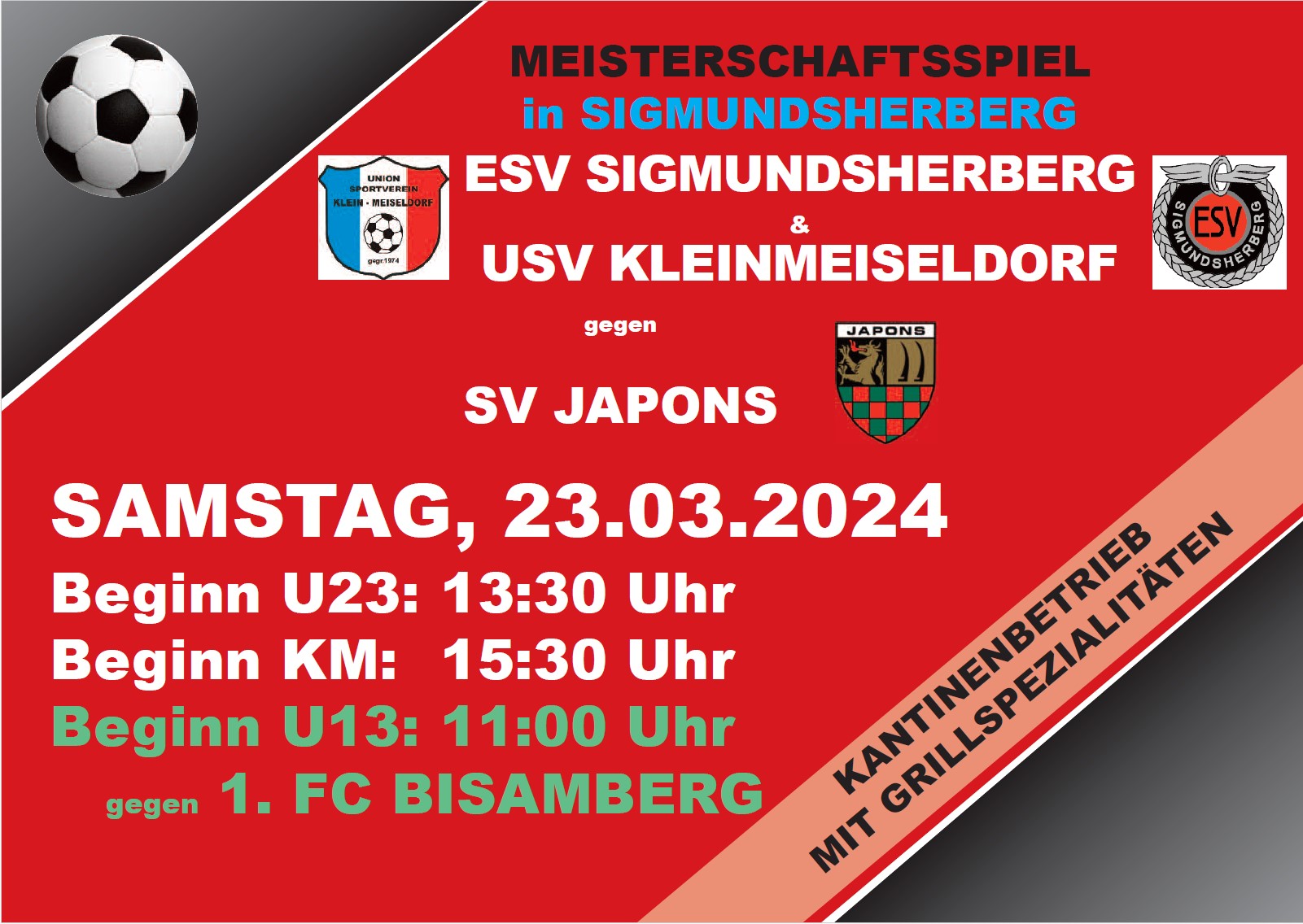Im ersten Heimspiel des Jahres 2024 musste sich unsere Mannschaft mit einem 2:2 gegen Japons begnügen. Bei unwirtlichem Fußballwetter bot die Partie in den ersten 45 Minuten wenig Höhepunkte. Praktisch mit dem Pausenpfiff stellten die Gäste aus Japons aber auf 0:1. Auch der zweite Treffer im Spiel ging auf das Konto der Japonser, diesmal aber unglücklich (aber sehenswert) ins eigene Tor. Nur kurz darauf stellten die Gäste aber schon wieder auf 1:2, diesmal schön herausgespielt, die Abwehr der SG Sigmundsherberg/Klein Meiseldorf im Dornröschenschlaf. Die Heimelf nun bemüht, aber eher mit stumpfen Waffen. So musste eine schöne Einzelaktion von Marek Cerny her, der auf 2:2 stellte. Dabei blieb es auch, ein durchaus leistungsgerechtes unentschieden, dass der SG aber nicht wirklich weiterhilft.