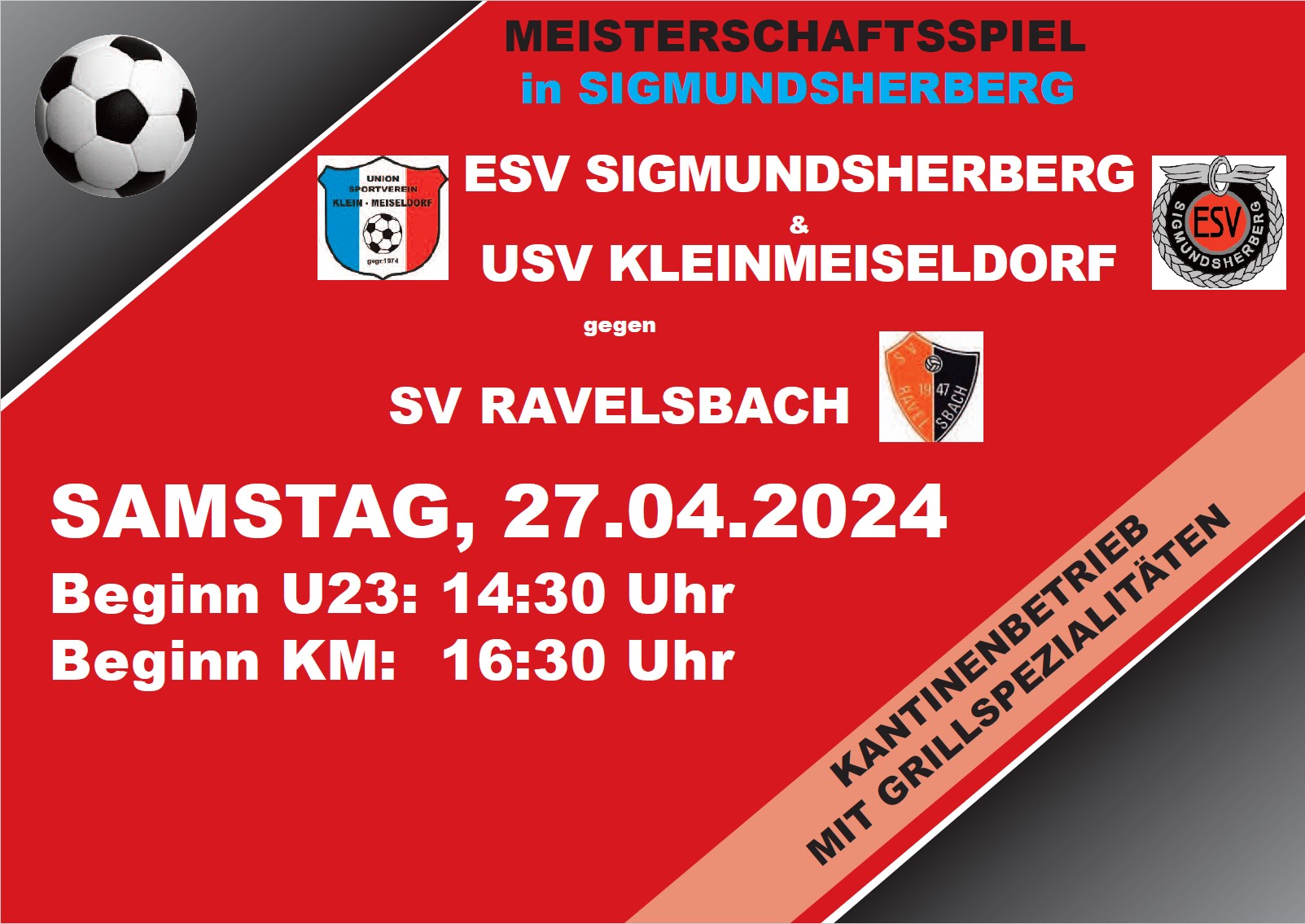 Weiter geht es für KM/U23 am Samstag, 27.04.2024, 14:30/16:30 Uhr in Sigmundsherberg gegen Ravelsbach. Die U13 muss schon am Freitag, 26.04.2024, 18:00 Uhr nach Wullersdorf. Schon am Donnerstag, 25.04.2024, 17:00 Uhr tritt unsere U7 in Sigmundsherberg gegen die Mannschaften des SV Horn an.