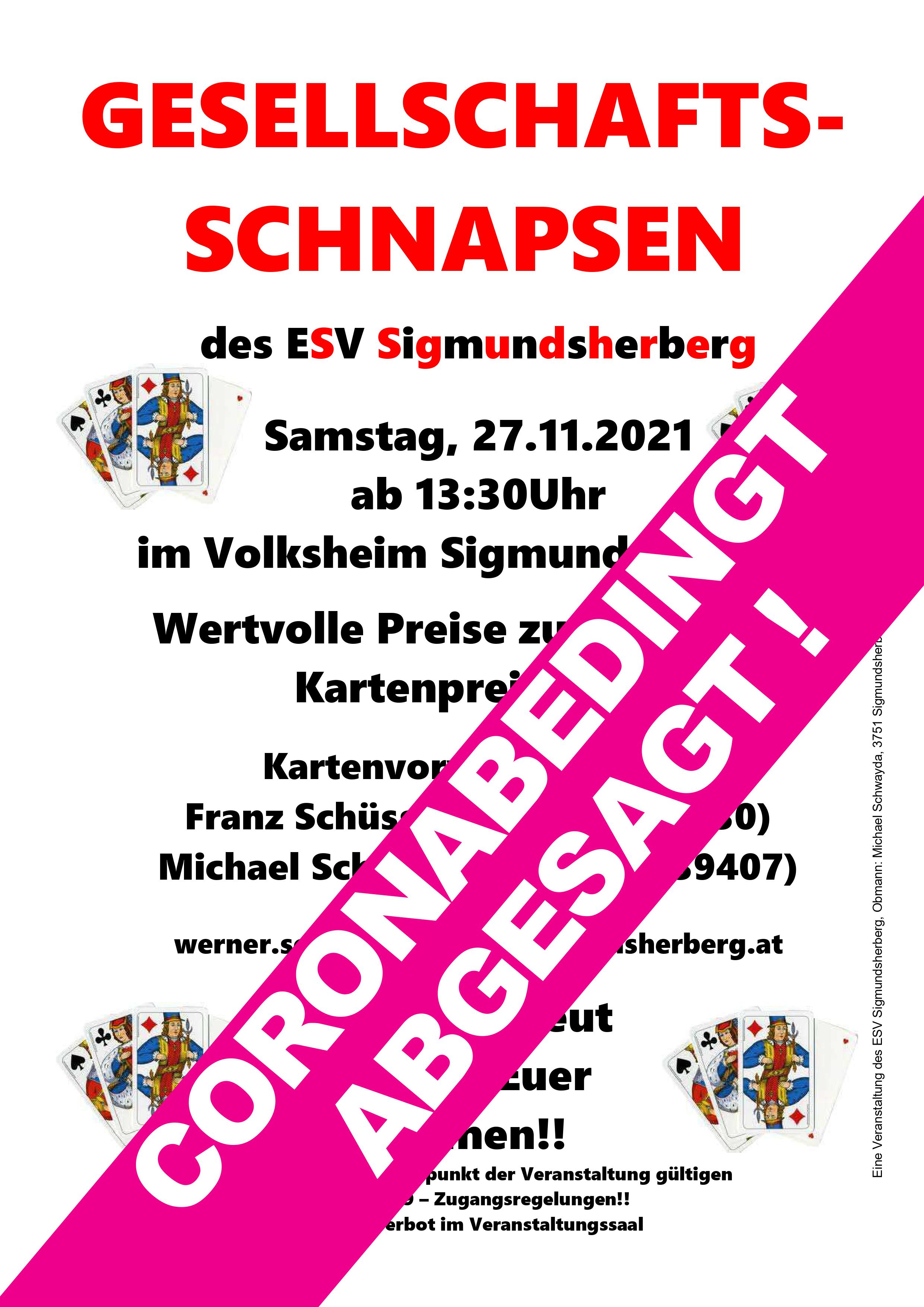 Leider müssen wir aufgrund der aktuellen Corana-Lage und der damit verbundenen Vorgaben, auch dieses Jahr unser Gesellschaftsschnapsen absagen. Ob und wann es einen neuen Termin gibt, werden wir rechtzeitig bekannt geben!