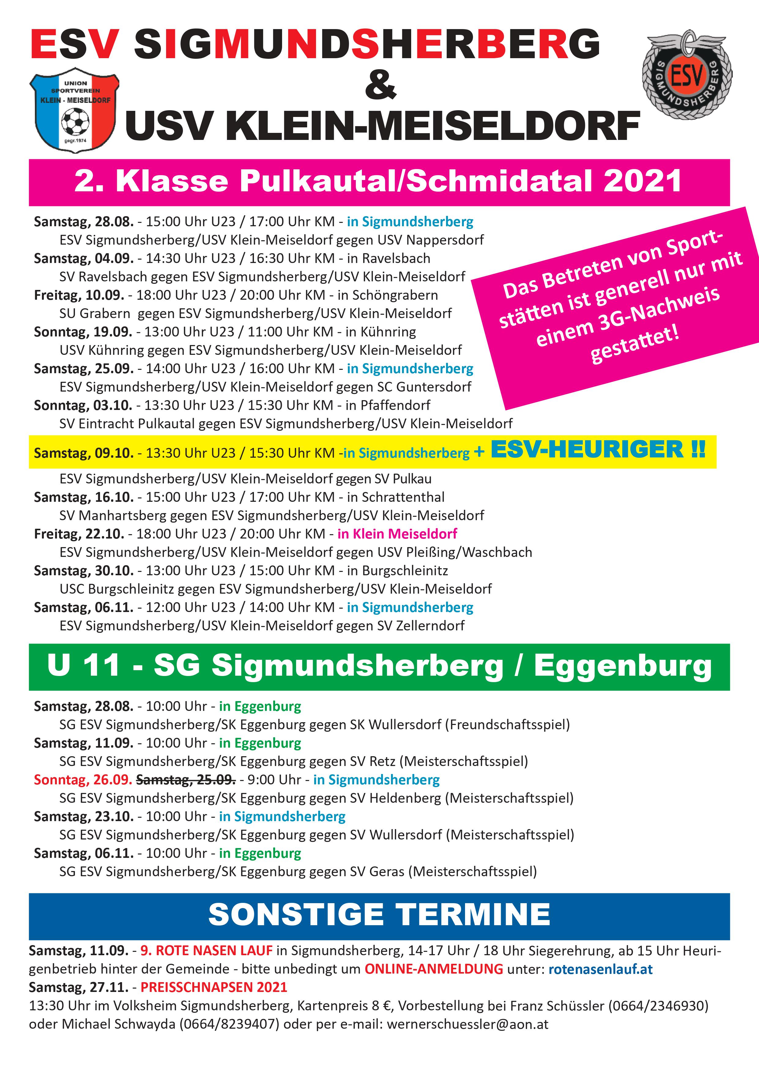 Der ESV startet in die Frühjahrssaison! Die Vorbereitung läuft bereits, gibt es auch wieder einge neue, aber auch schon bekannte Gesichter im Kader. Los geht es mit einem Heimspiel am 26.03.2022, 13:30/15:30 Uhr in Sigmundsherberg gegen Hadres-Markersdorf. Die U11 startet dann am 03.04.2022, 10:30 Uhr in Eggenburg gegen St.Bernhard. Alle Termine findet ihr in diesem Flyer!