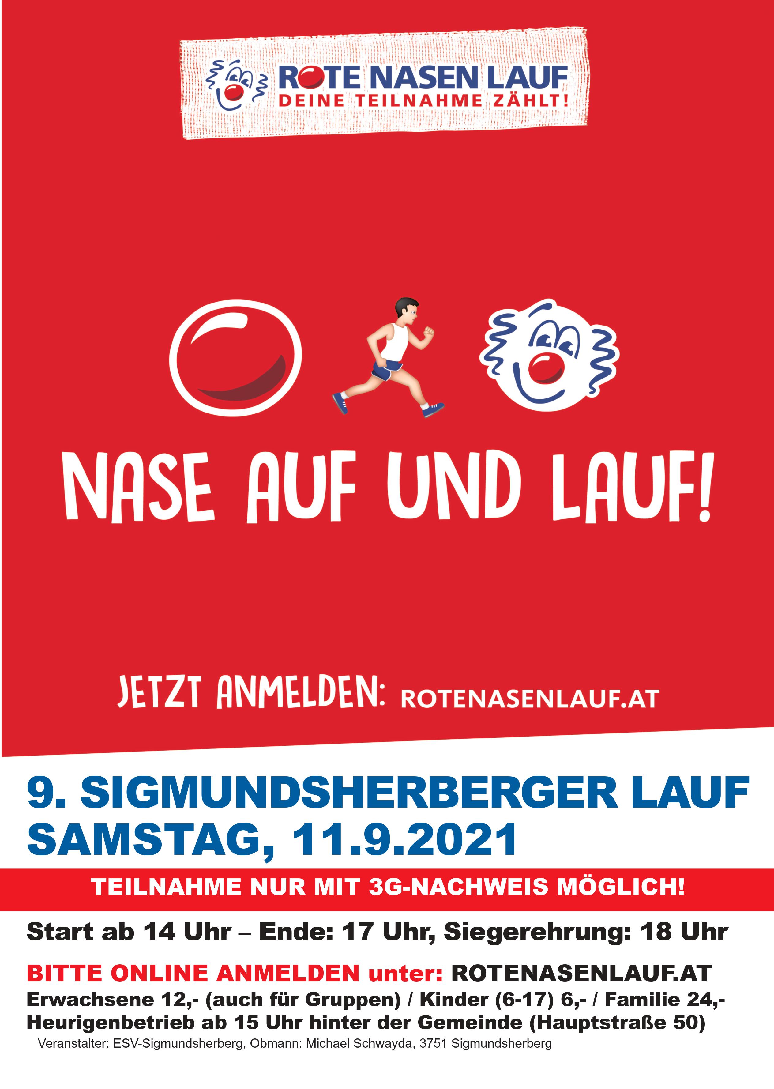 Nicht vergessen: der 9. Sigmundsherberger Rote Nasen Lauf startet am Samstag, 11.09.2021, 14:00 Uhr bei der Gemeinde Sigmundsherberg! Anmelden könnt ihr euch bitte hier online: https://rotenasenlauf.at/lauf/9-sigmundsherberger-rote-nasen-lauf