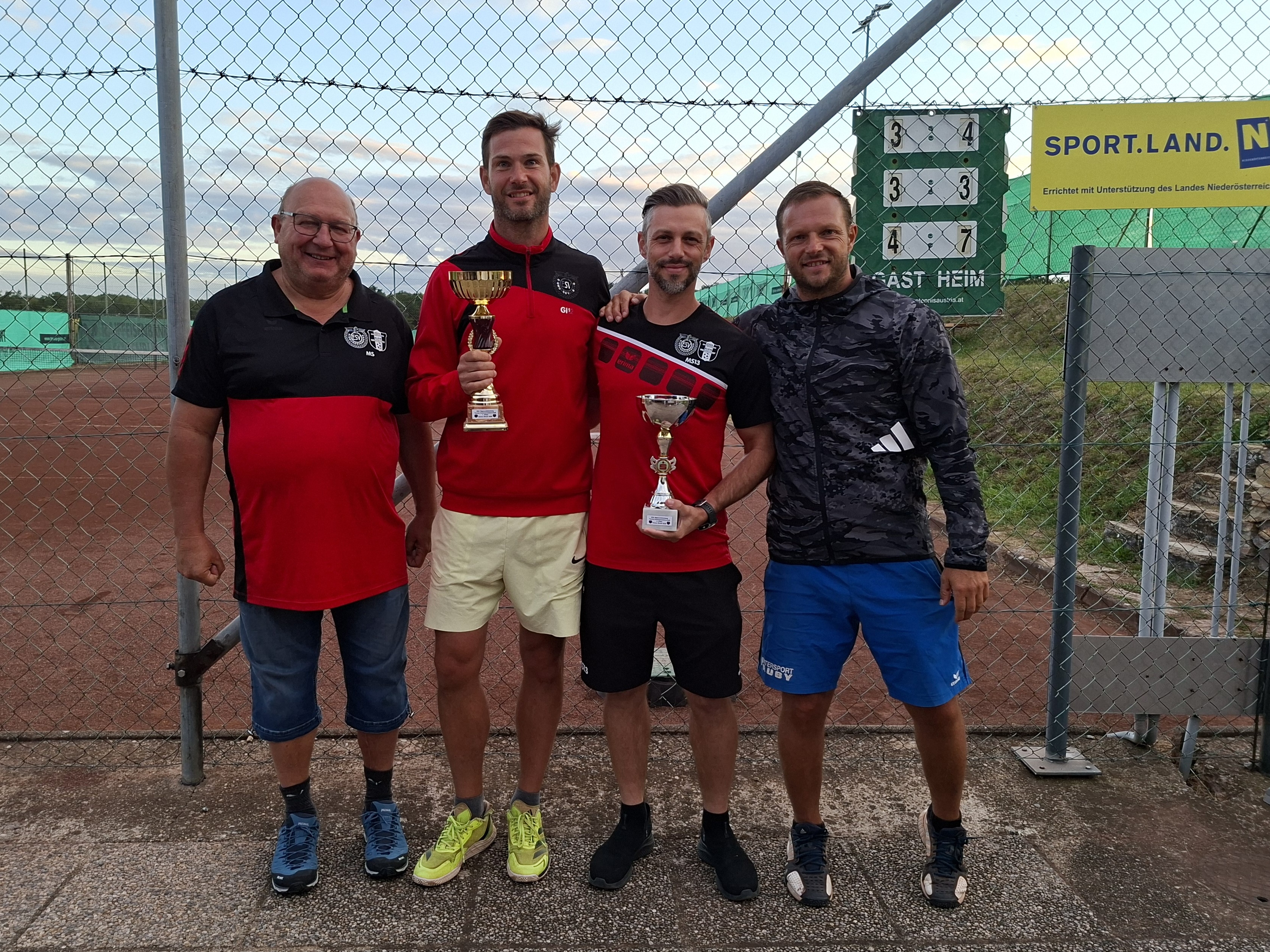 Auch die Tennissaison hat nun so richtig begonnen. Neben dem bereits laufenden Vereinsturnier (derzeit Gruppenphase, Einzel-/Jugendfinale am 23.08.2025, Doppelfinale am 24.08.2025), geht es auch für die Bezirksligamannschaft in eine neue Saison. Und der der Auftakt konnte sich sehen lassen! In Horn wurde die Mannschaft des UTC mit 7:0 besiegt. Für den ESV holten Gerhard Koch, Philipp Heimberger, Michael Schmudermayer, Gogo Schleinzer und Karl Liebhart alle fünf Einzel und beide Doppel. Herzliche Gratulation zum Auftakterfolg!